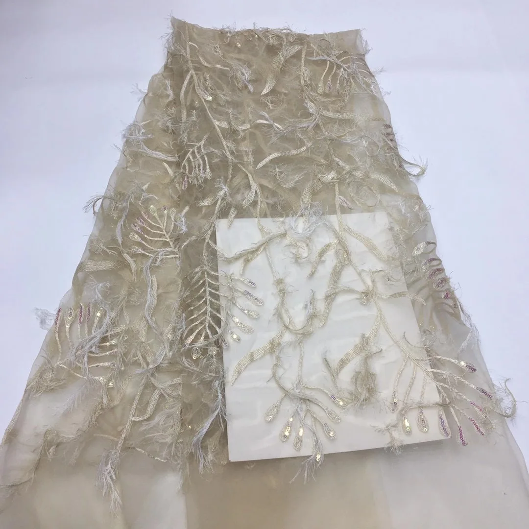 Африканская французская Тюлевая кружевная ткань с перьями, Высококачественная вышитая сетчатая кружевная ткань с блестками для свадьбы XX4578
