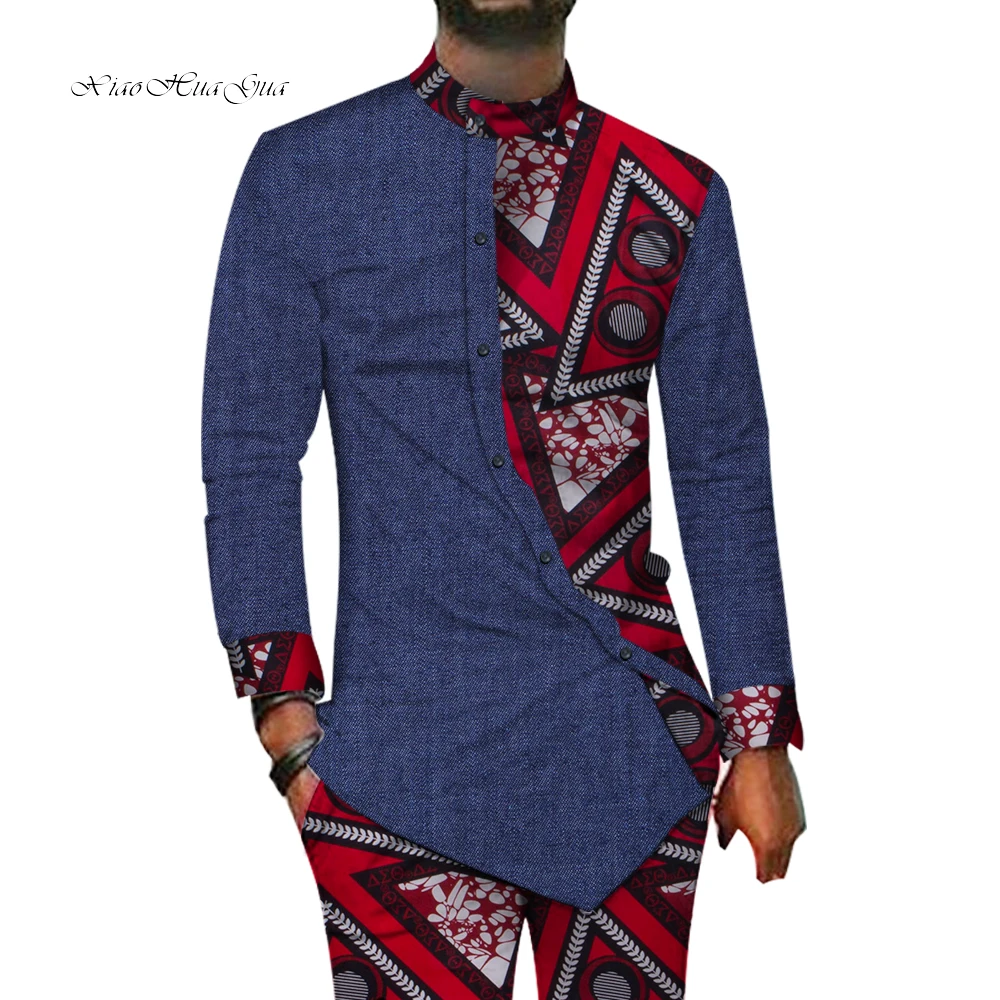 Африканские мужские костюмы, рубашка с длинным рукавом и брюки, пиджак с принтом и брюки, деловые официальные повседневные хлопковые вечерн...