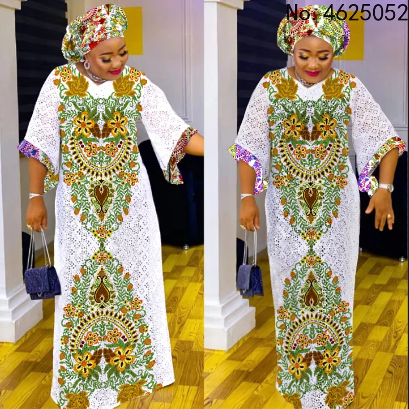 Африканские платья Дашики для женщин, традиционное цветочное кружевное платье с вышивкой, женская одежда для вечевечерние в стиле хиппи, дл...