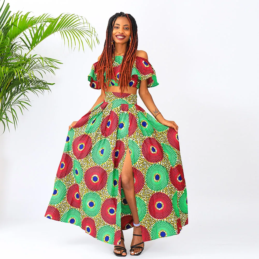 Африканские платья для женщин, новинка 2022 года, высококачественное повседневное праздничное платье с принтом Анкары, женская зеленая Сексу...