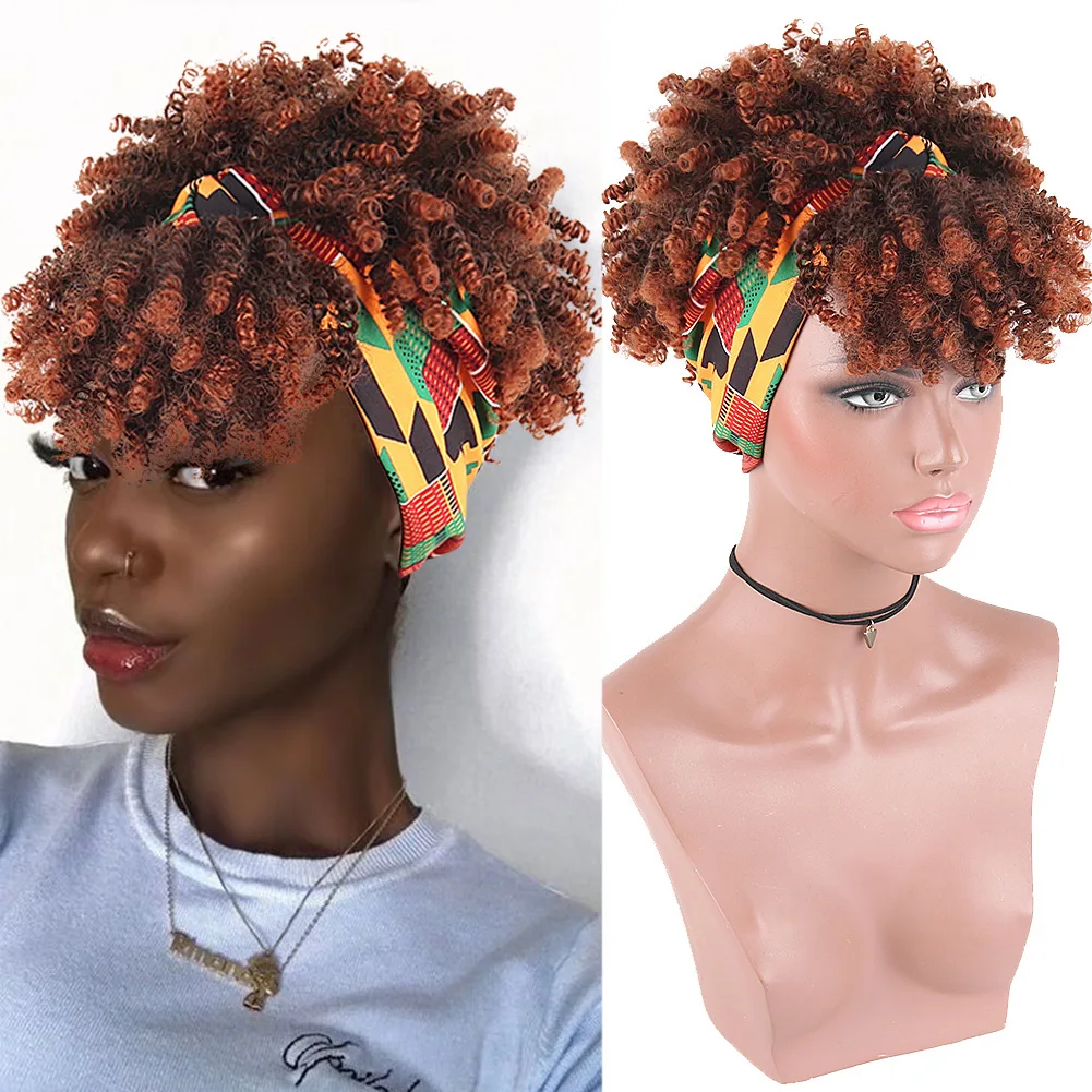 Афро кудрявые Кудрявые Волнистые Короткие волосы с головной повязкой афро парики для обертывания с челкой синтетические волоконные парики для женщин