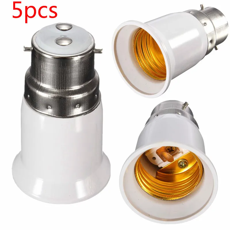 5pcs B22 to E27 Base LED Light Lamp Bulb Fireproof Holder Adapter Converter Socket Change B22(male plug) to E27(female socket)