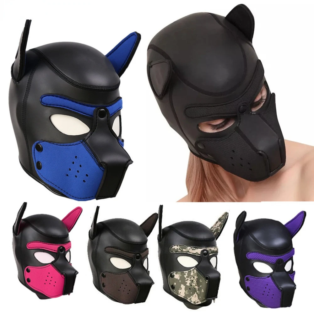 БДСМ-игрушки, секс-игрушка, губка, черная головка собаки для мужчин и женщин, эротические капюшоны, Набор принадлежностей для БДСМ, бондажа, капоты для щенков, резиновые маски для Мопса
