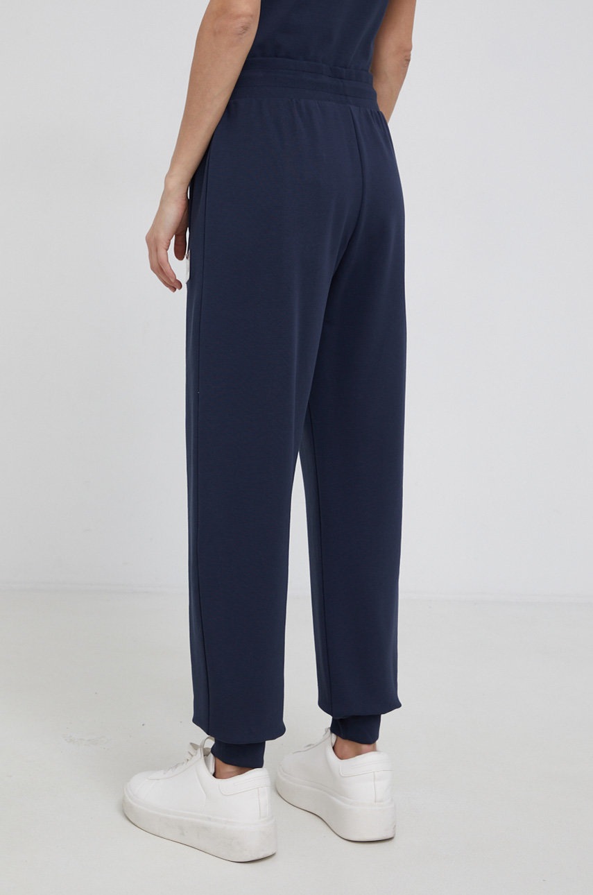 Бавовняні штани Armani Exchange жіночі колір синій з аплікацією