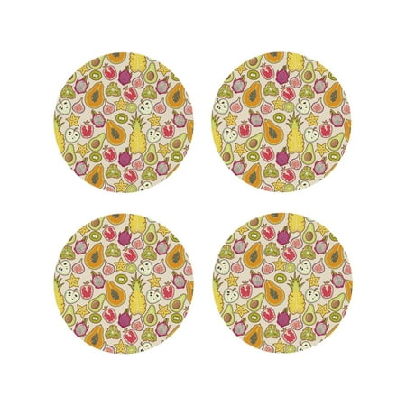 Leather Coasters with Heat-resistant for Drinks cute fruits -标题2 Round Shape