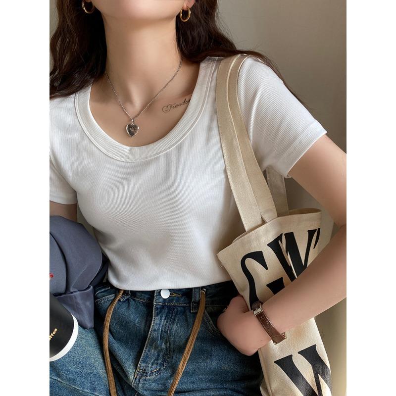 Базовая белая футболка женская летняя с короткими рукавами, новый стиль, круглый вырез, тонкая простая хлопковая футболка с верхом на правом плече M