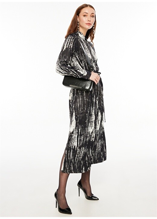 Базовая женская рубашка с воротником рубашки с узором серо-черно-белая Fabrika