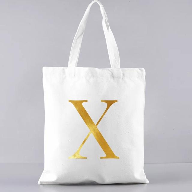 Базовая сумка для покупок, повседневная сумка через плечо, пригородное имя, 26 золотых букв, простая холщовая сумка-тоут с принтом 24*26cm