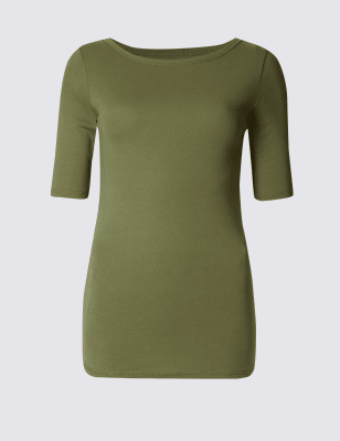 Базовая футболка из чистого хлопка с горловиной-лодочкой
