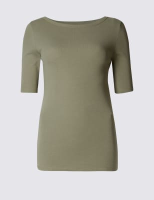 Базовая футболка из чистого хлопка с горловиной-лодочкой
