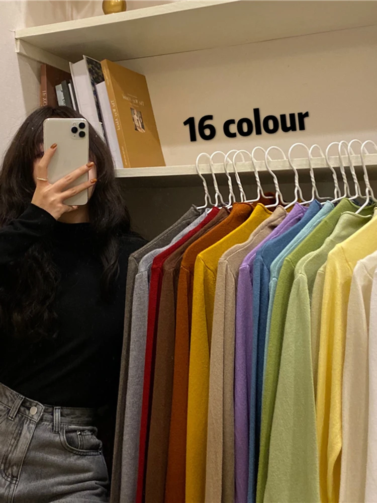 Базовый однотонный осенне-зимний пуловер с круглым вырезом, Женский вязаный свитер в рубчик, Облегающая водолазка с длинным рукавом, свитер...