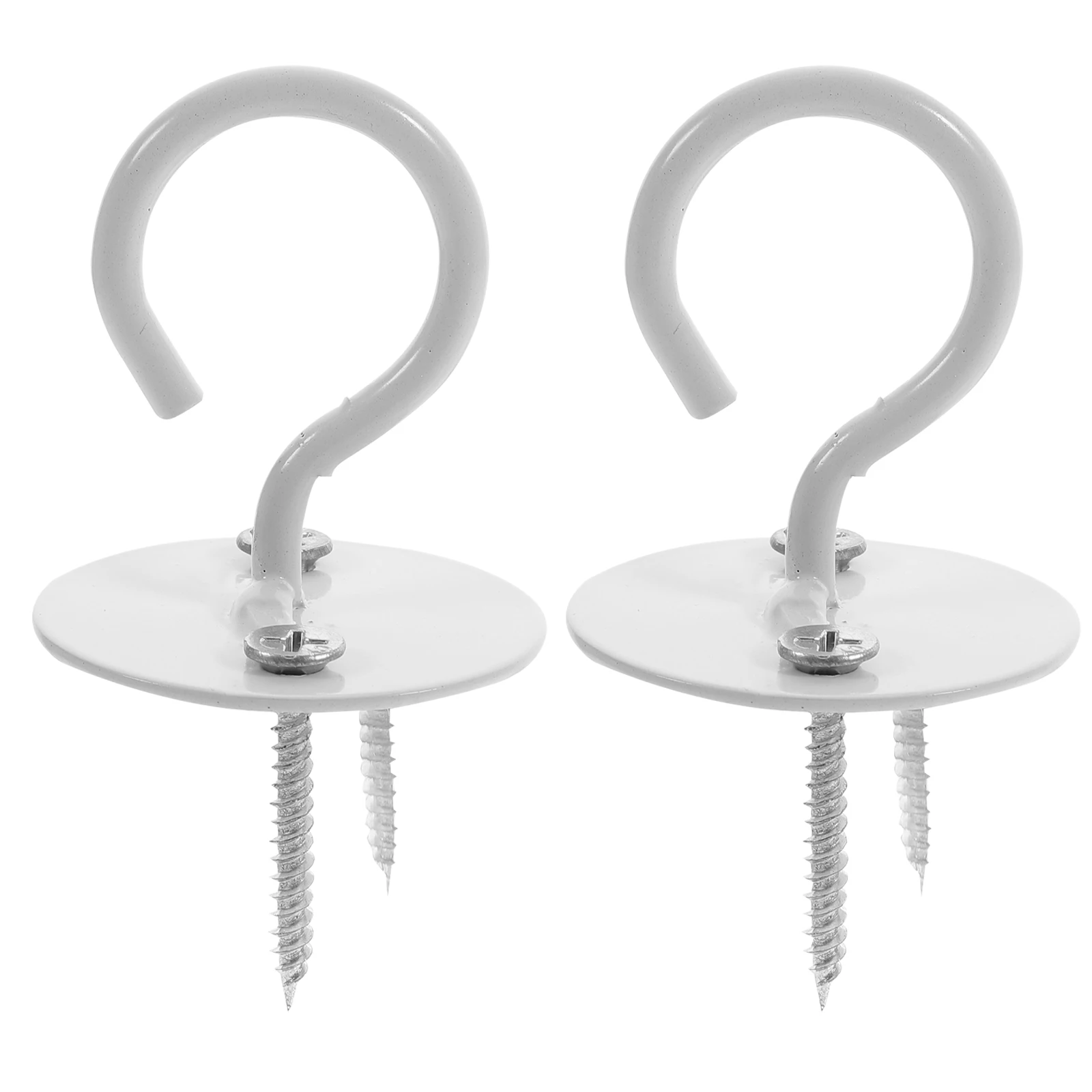 2 Pcs Iron Hooks White Heavy Duty Wall Mount Ceiling Hangers Sturdy Anti Corrosion Thickened Base Symmetrical Screw