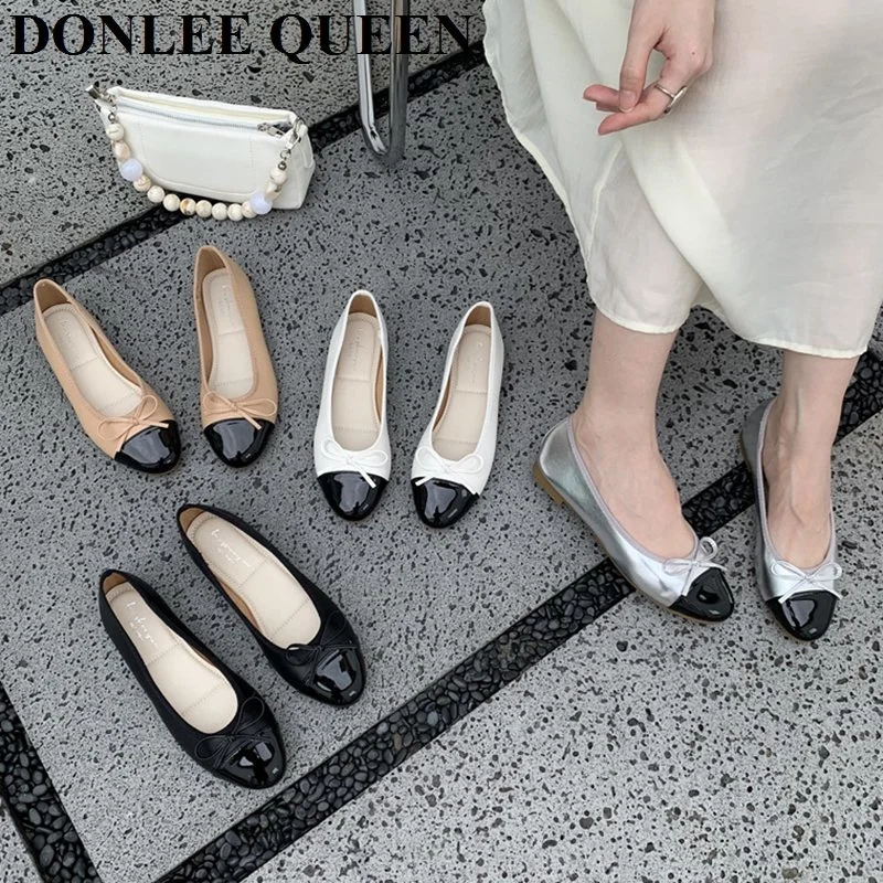 Балетки женские с круглым носком, брендовые мягкие лоферы, без застежки, с бантом, плоская подошва, демисезонные