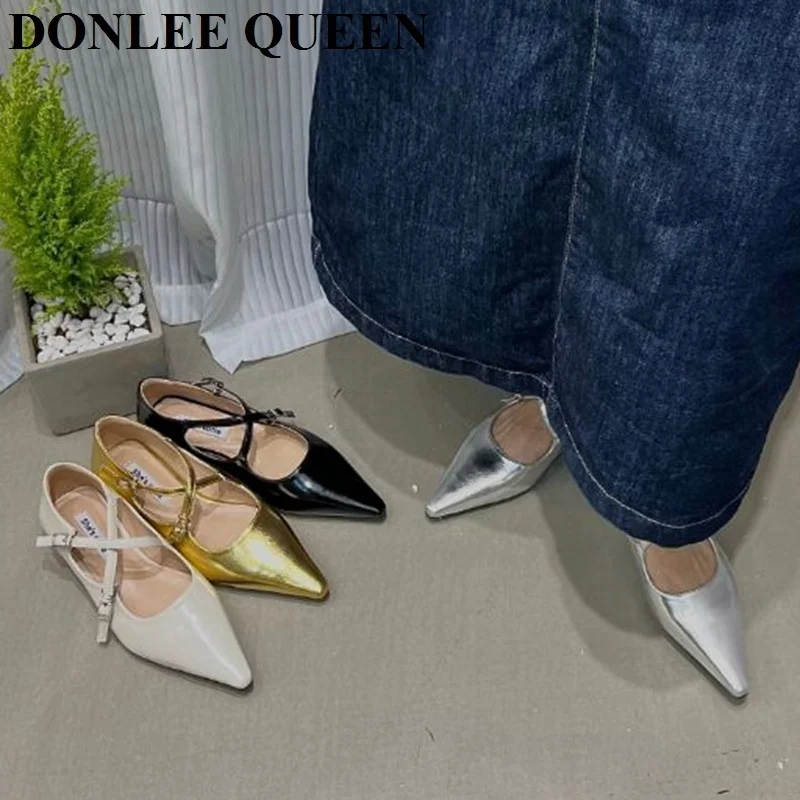 Балетки женские с острым носком, Классические мягкие лоферы, Туфли Мэри Джейн, плоская подошва, повседневная обувь