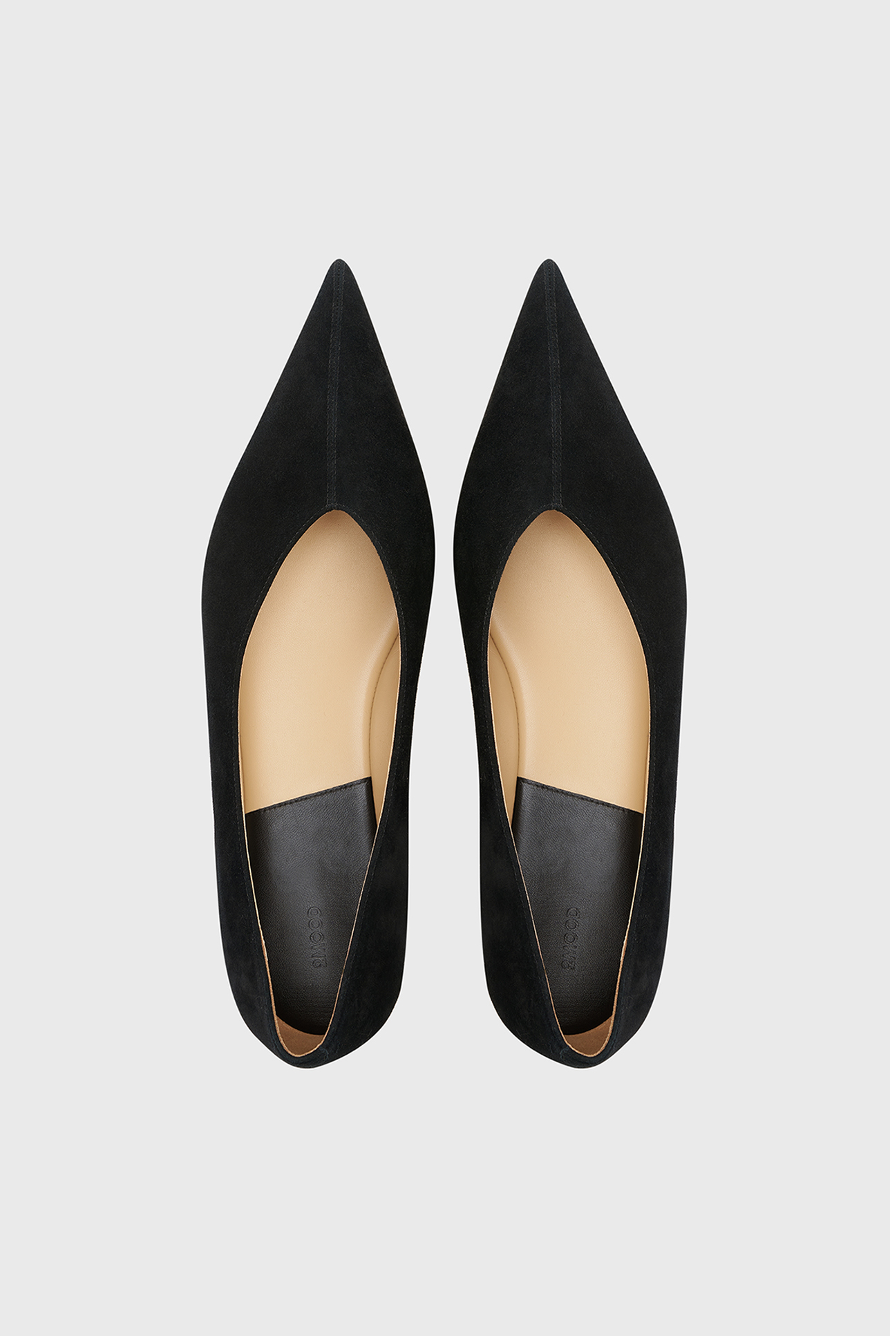 Новая модель балеток с острым мысом - тренд сезона. Верх выполнен из козьей замши высокого качества, подкладка из натуральной кожи шевро. Подошва из тунита, который максимально похож на кожу, но не промокает и медленней изнашивается. Небольшой каблук значительно увеличивает комфорт, правильно распределяя вес тела.
