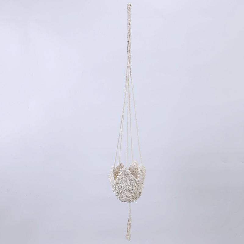 Балконная вешалка для растений ручной работы, корзины, держатель цветочных горшков с кисточкой, завязанная подъемной веревкой белый