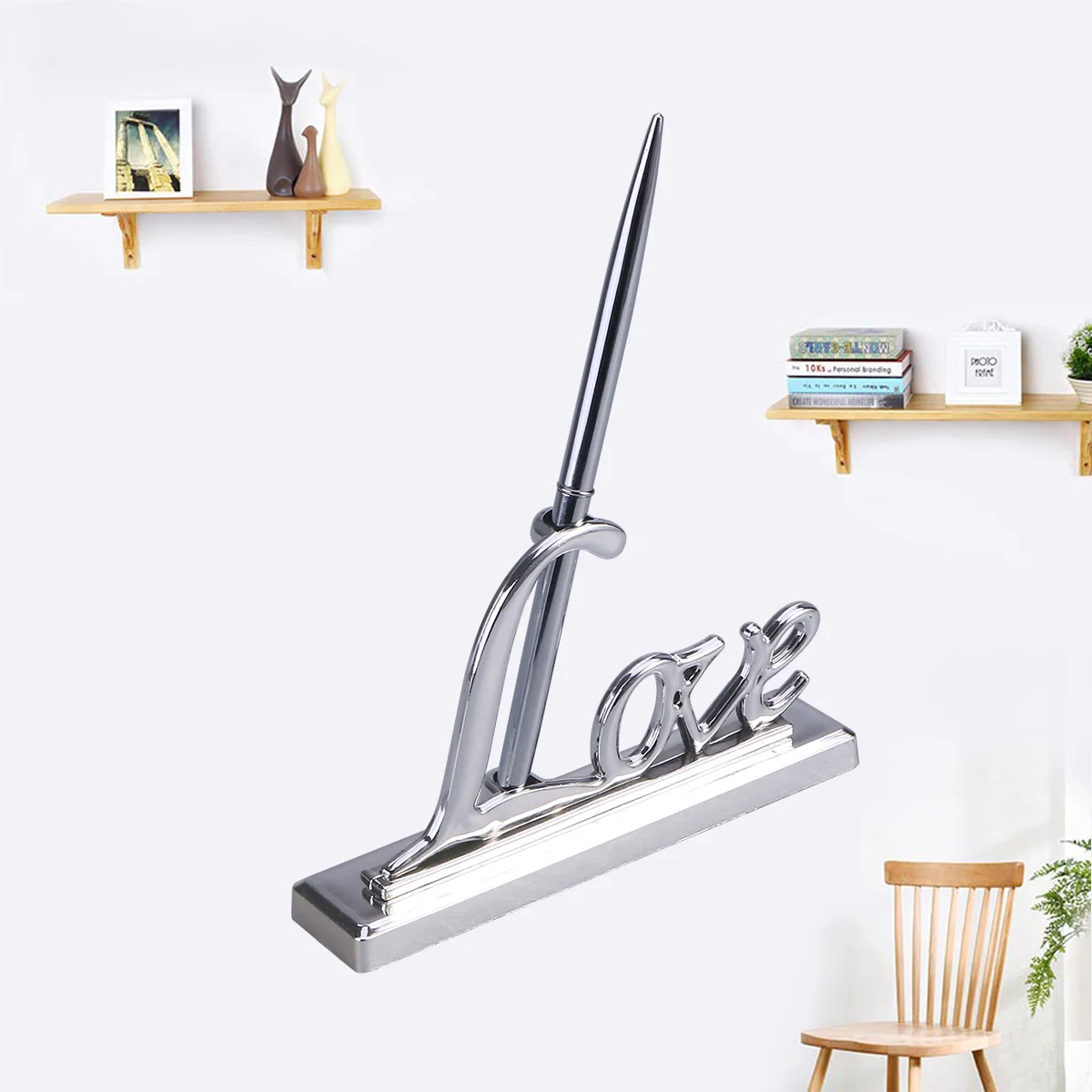 Wedding Signing Pen with Silver Plated Metal Love Holder Party Pen Set (Silver)
