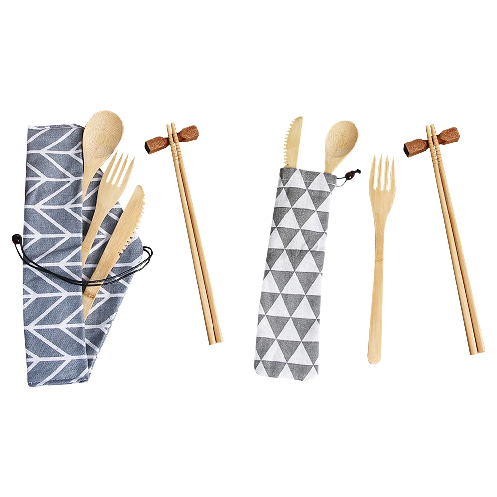 Бамбуковые столовые приборы, многоразовые приборы с сумкой для хранения, бамбуковый чехол, дорожный набор столовых приборов, столовые приб...