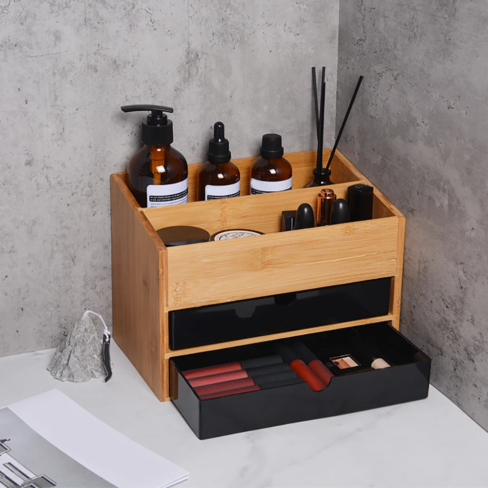 Бамбуковый раздельный ящик для хранения косметики, настольный органайзер, офисный ящик для хранения, настольная стойка для украшений и ухода за кожей
