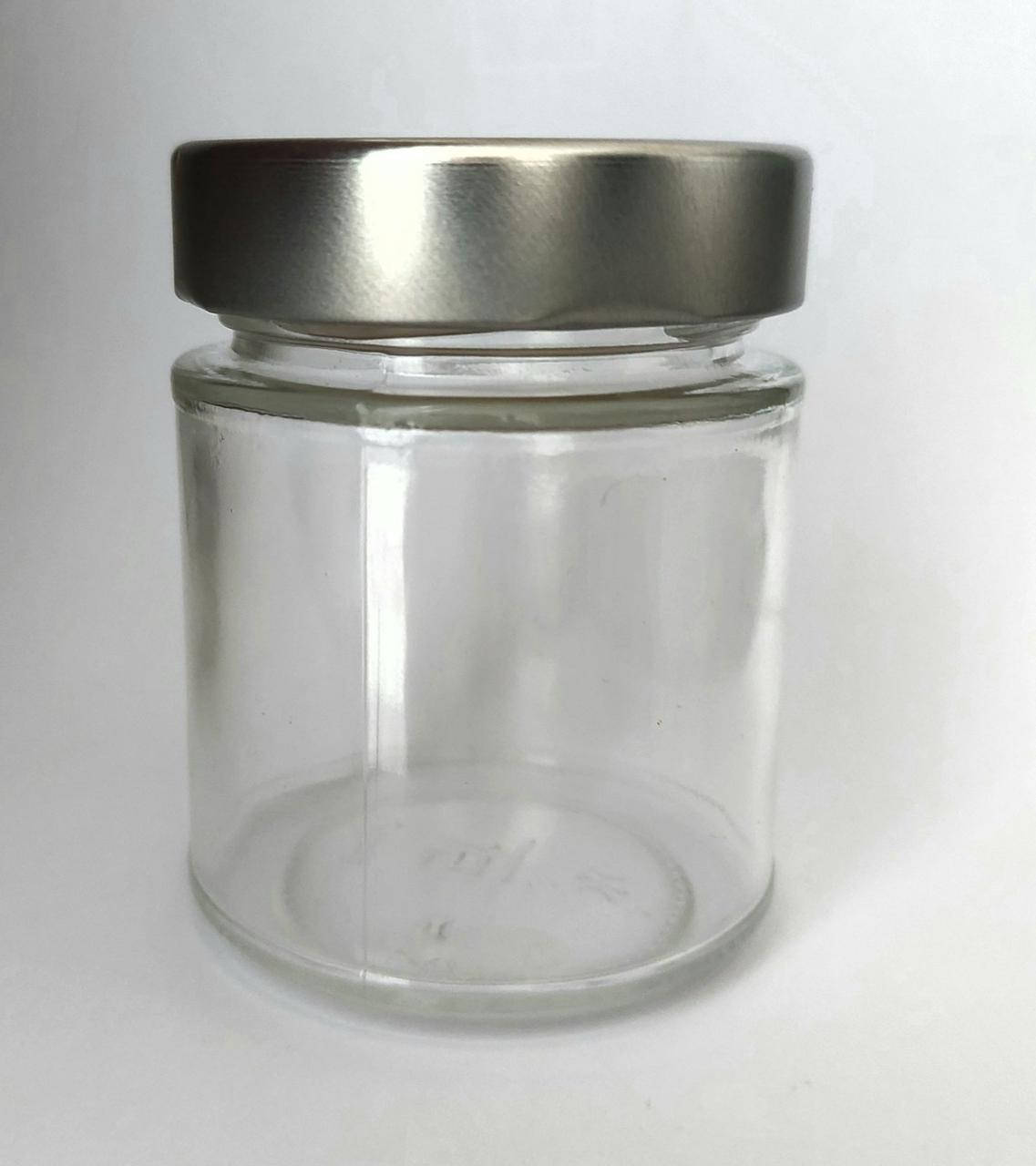 Банка 161 мм с высоким горлышком в комплекте с дип крышкой серебристого цвета.