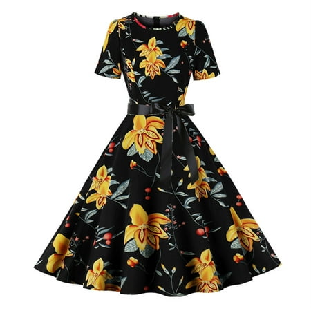 Bigersell Blazer Dress Women s Round Neck Dresses for Women Beach Floral Print Short Sleeve Zipper Swing Dress Maternity Photoshoot Dress Regular Mini Dresses Style 2480 Yellow XL