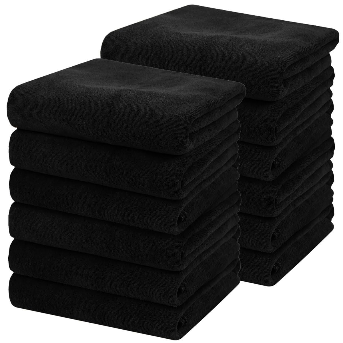 Банное полотенце, большое косметическое полотенце, коммерческое использование, микрофибра, 70 x 140 см, 960 момми, набор из 12 штук, черное, для салонов красоты, быстросохнущее, мгновенно впитывающее, большое полотенце чёрный