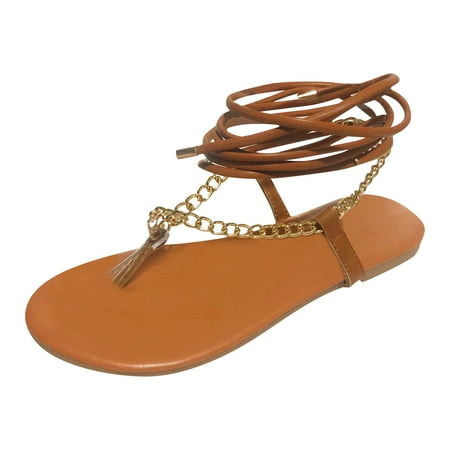 Women s Summer Flat Chain Lace Up Sandals Flip Flops Outdoor Round Toe Shoes