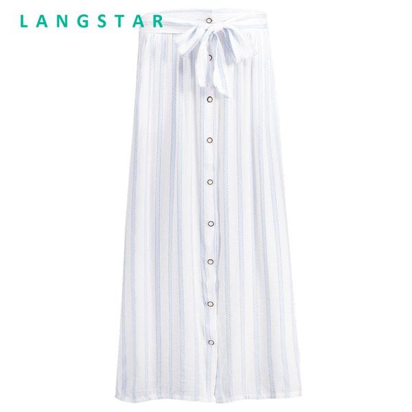 skirts langstar women tied bowknot striped maxi skirt leisure slim straight button autumn ladies girl clothes, Black