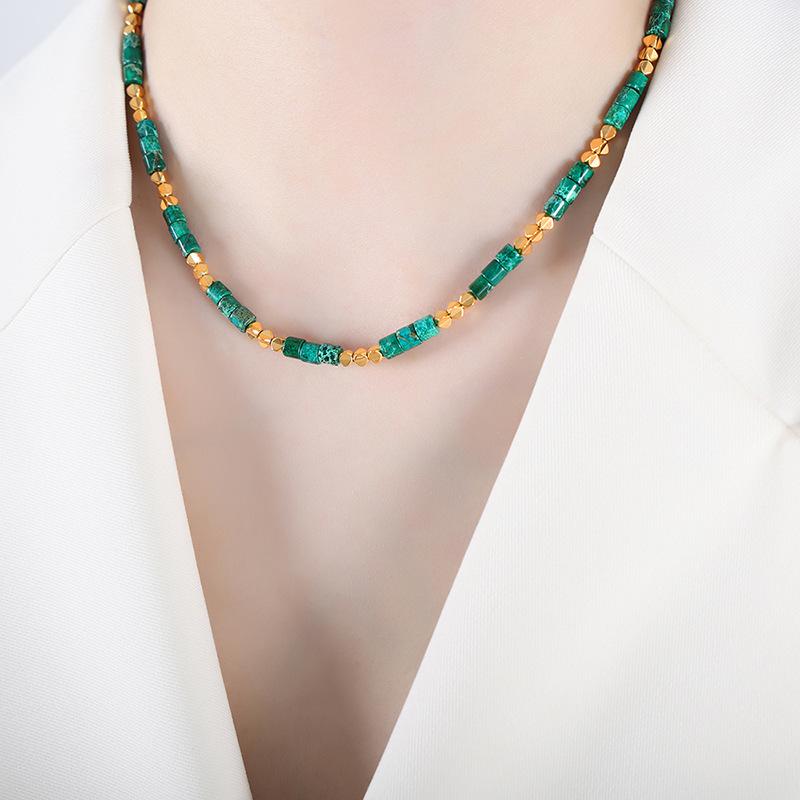 Барокко натуральный камень красочный императорский камень круглые бусины бисерное ожерелье ручной работы титановая сталь универсальная ключичная цепочка ювелирные изделия для женщин
