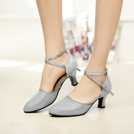 Fidelma High Heels Women s Ballroom Tango Latin Dancing Shoes Sequins Shoes Social Dance Shoes Silver 37