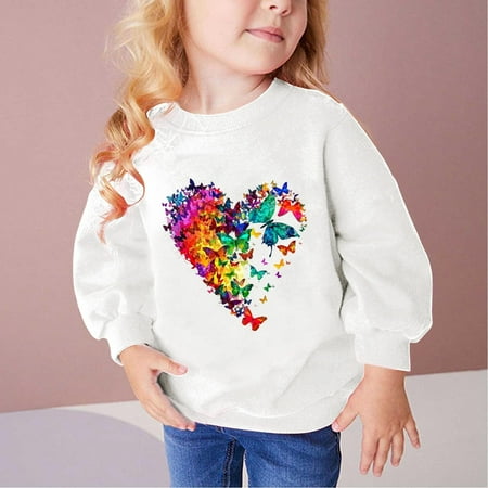 Geire Children Fall Winter New Hoodless Sweatshirt 100% Cotton Soft Shirt Love Printed Crewneck Long-sleeved Tops Pullover Sweatshirt for Mid-large Children