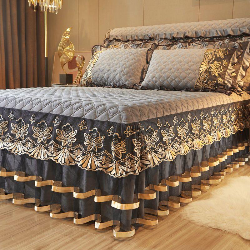 Бархатное теплое стеганое постельное белье Юбка-кровать Наволочки Домашний текстиль Принцесса Плотное покрывало Кружевная простыня Наматрасник с хлопком 150*200cm with pillowcase