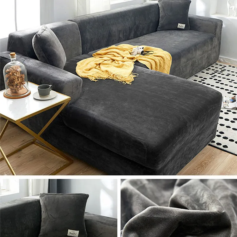 Бархатный Чехол для дивана, эластичный плотный угловой чехол L-образной формы для гостиной на 1/2/3/4 места, Натяжной чехол для дивана, кресла