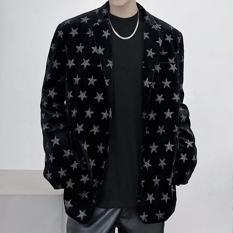 Бархатный блейзер со звездами, яркий бриллиант, Свободный Повседневный костюм, Блейзер, куртка, мужское винтажное модное платье, костюм, пал...