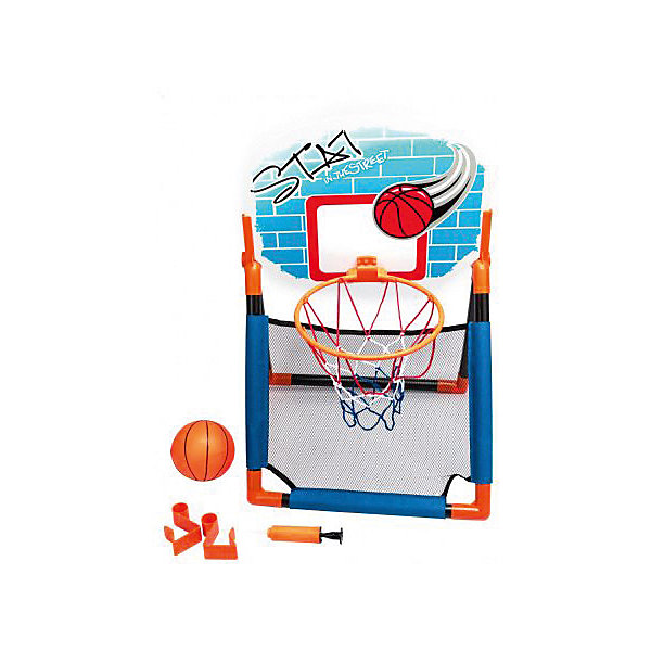 Баскетбольный щит с широким кольцом и маленьким надувным мячом. Его можно закрепить на полу либо на двери.