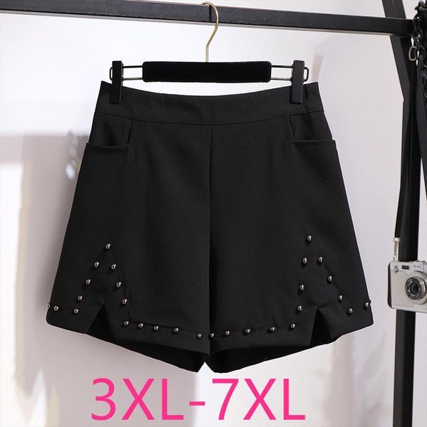 spring summer plus size women shorts large casual loose elastic waist wide leg rivet thin black 4xl 5xl 6xl 7xl, White;black