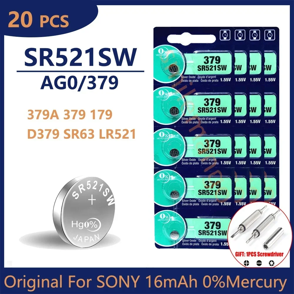 Батарейки для кнопок SONY LR521 AG0 SR521SW 379A 379 179 D379 SR63, оригинальные, 20 шт.