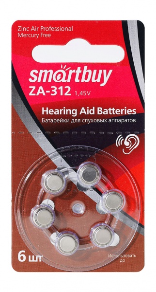 Батарея Smartbuy Zinc Air, ZA10, AC10, DA230, PR70, PR230L, 1.45V, 6шт. (SBZA-A312-6B)