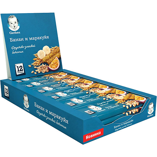 Батончик Gerber банан, маракуйя с 12 мес, 18 шт х 25 г/уп