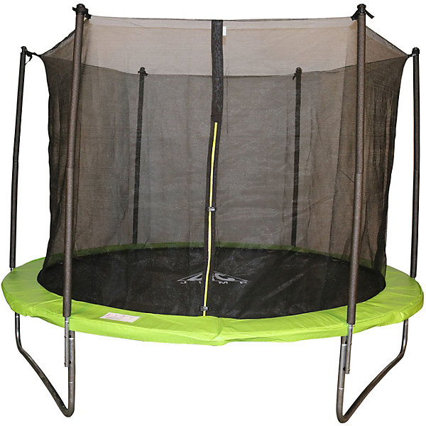 Батут дополнен возможностью складывания стойки с сеткой, не разбирая его. Для этого убираются фиксирующие пальцы при помощи колец и вынимается труба из U-ножки. Сборка производится в обратной последовательности. Конструкция надёжная, с прочной рамой и двухсторонним покрытием, которое нанесено при использовании метода холодной гальванизации. Большое количество пружин увеличивает высоту прыжка, износостойкие и хорошо растягиваются. Закрыты чехлом для безопасности. Для входа и выхода есть молния с фиксирующейся защёлкой с внешней стороны.