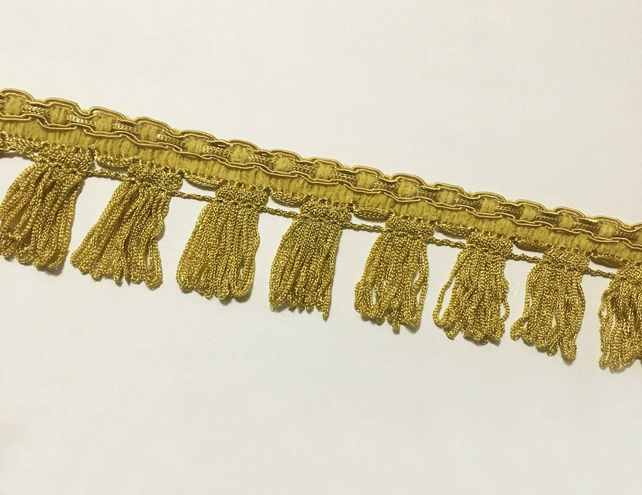 Бахрома для штор шириной 6 см, золотистого цвета. Бахрома изготовлена на основе тесьмы с рельефной узорчатой поверхностью. Это очень эффектный и выразительный декор для штор, ламбрекенов, скатертей или декоративных подушек.