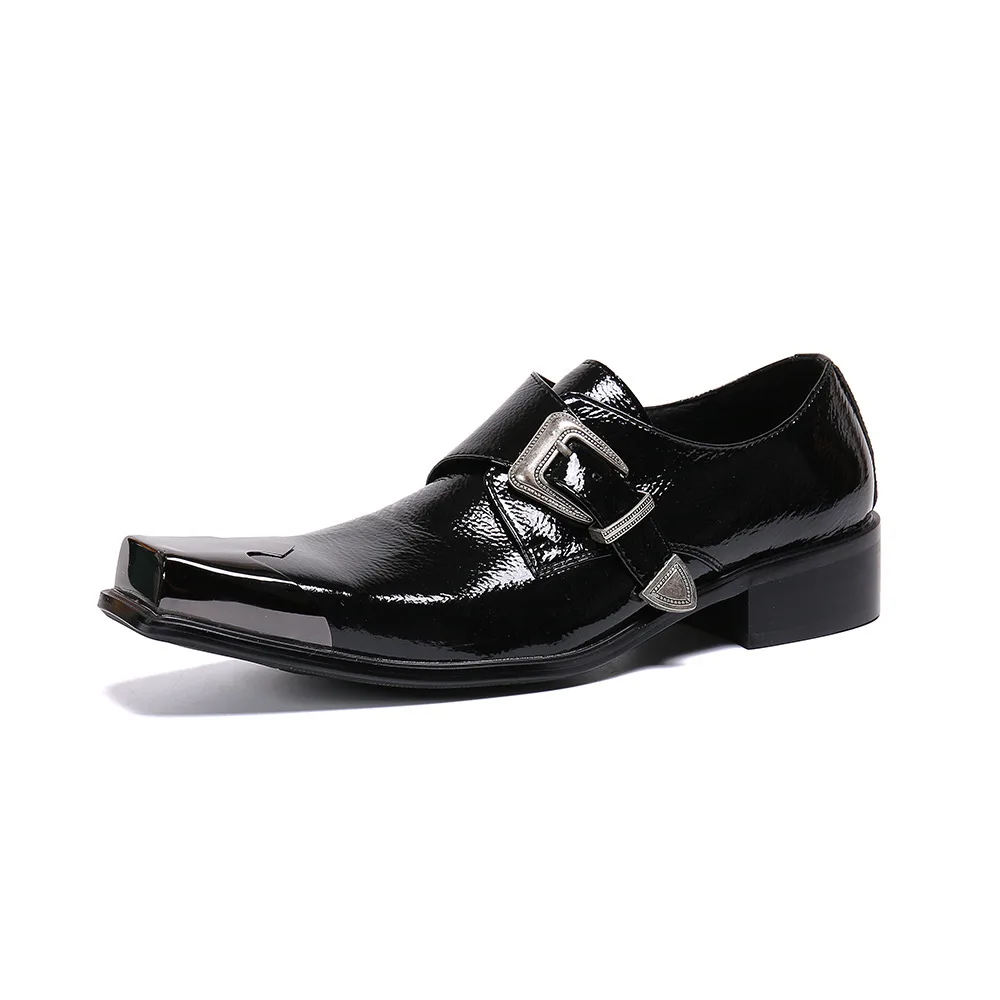Genuine Patent Leather Shoes Men Autumn New British Square Head Cowhide Leather Oxfords Handmade Hasp Business Dress Shoes