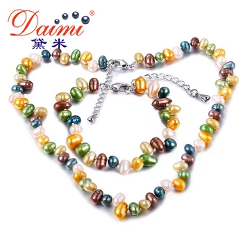 DAIMI 2019 New Arrival 5-6mm Freshwater Pearl jewelry sets Necklace&Bracelet&Earrings gift for girlfriend