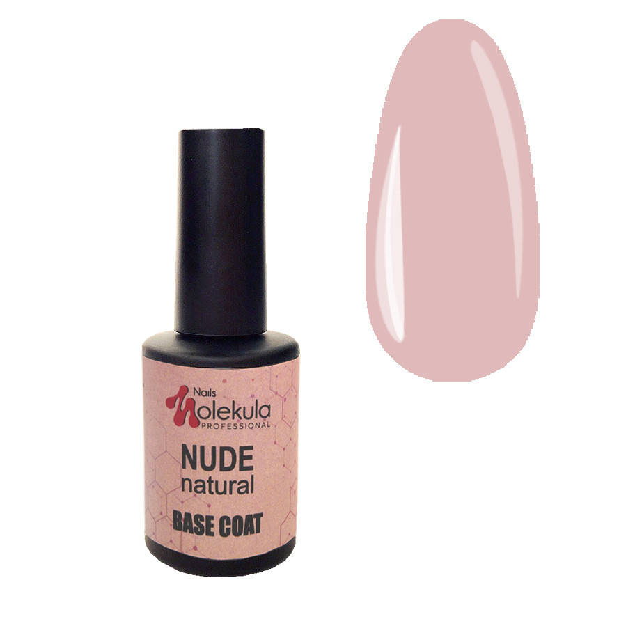 Бежевая камуфлирующая база "Nails Molekula BASE COAT RUBBER NUDE NATURAL" 12ml.