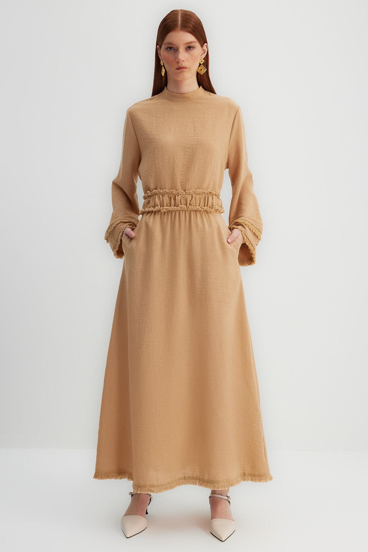 Бежевая тканая юбка с кисточками на талии X Kevser Sarıoğlu TCLSS23EE00000..
