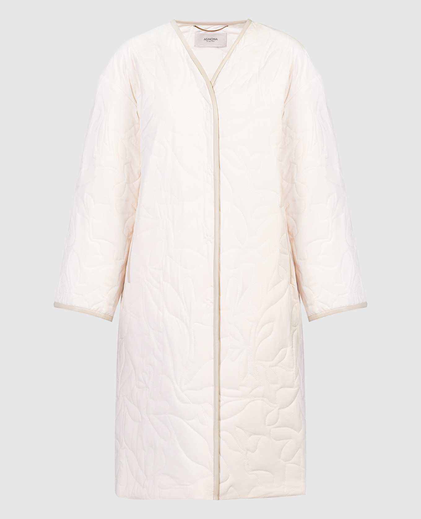 Бежевое стеганое пальто с кожаными вставками, Бежевый, Пальто
