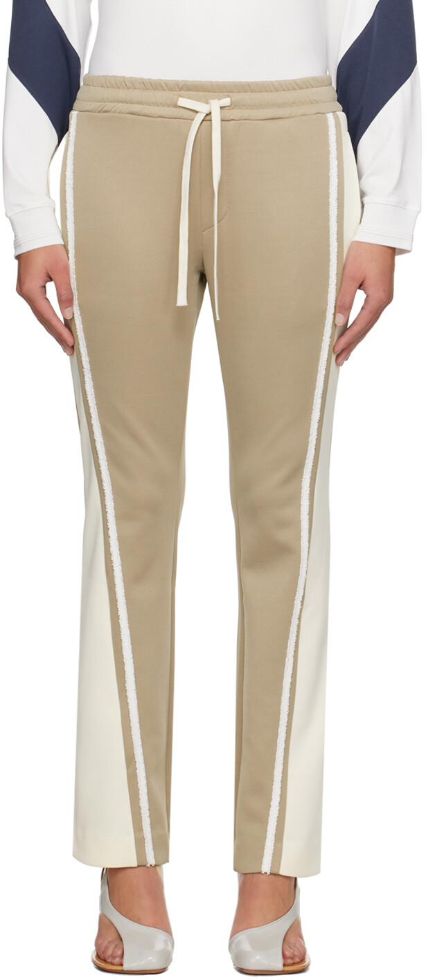 Бежево-белые спортивные брюки с расклешенной лентой Kijun