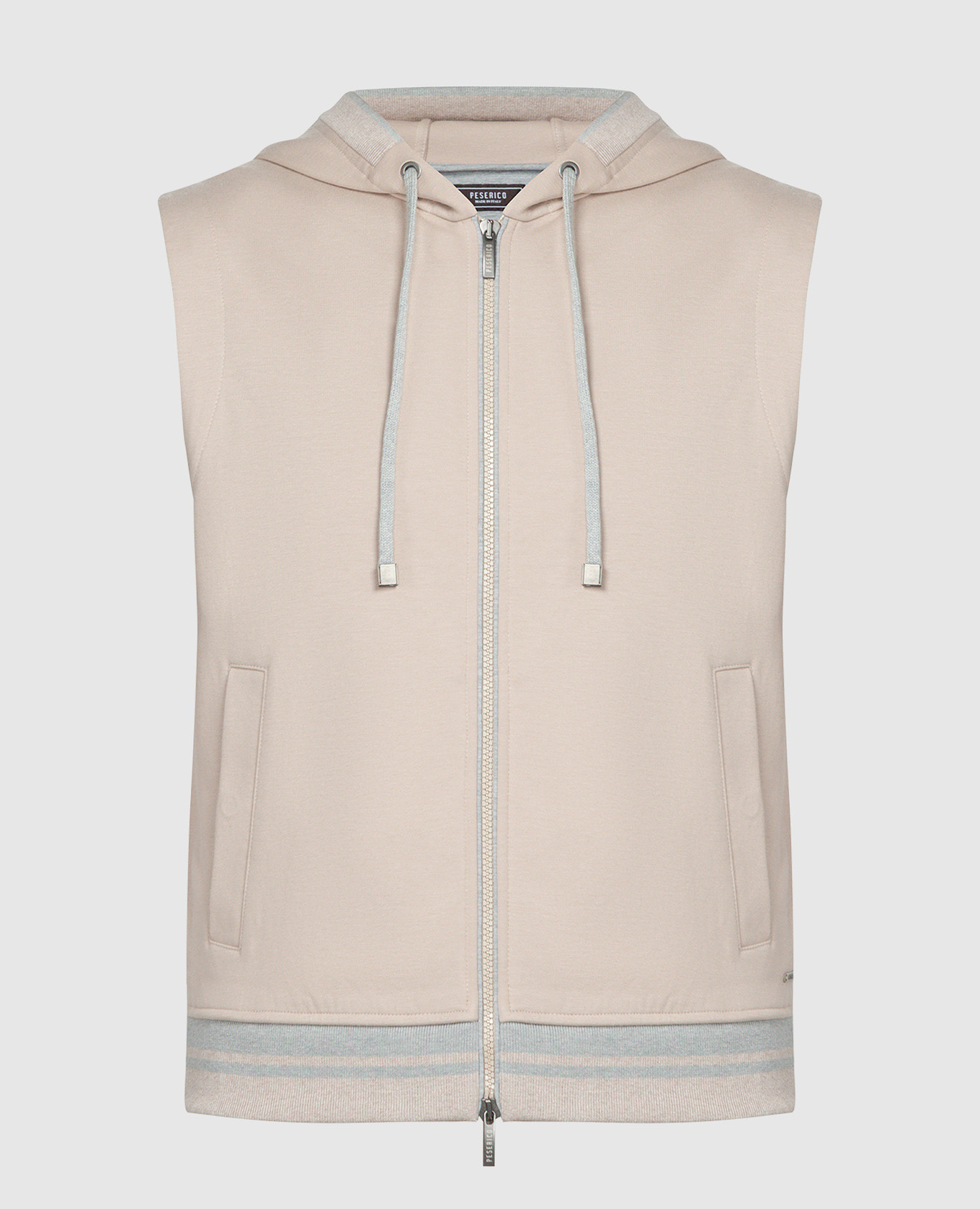 Бежевый жилет с металлическим логотипом, Трикотажные