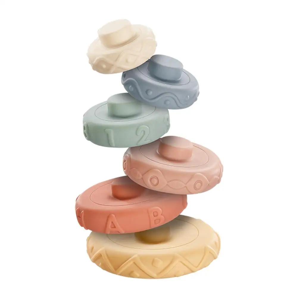 Безопасные Мягкие силиконовые штабелируемые кольца, башня, игрушки Монтессори, детские развивающие Игрушки для раннего развития, игрушки д...