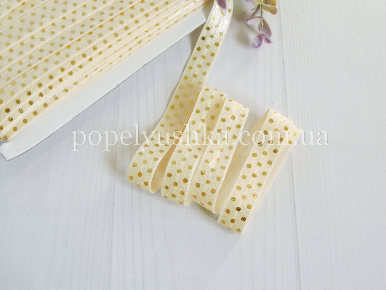 Бейка-резинка 1,5 см "Золотой горох" молочная
